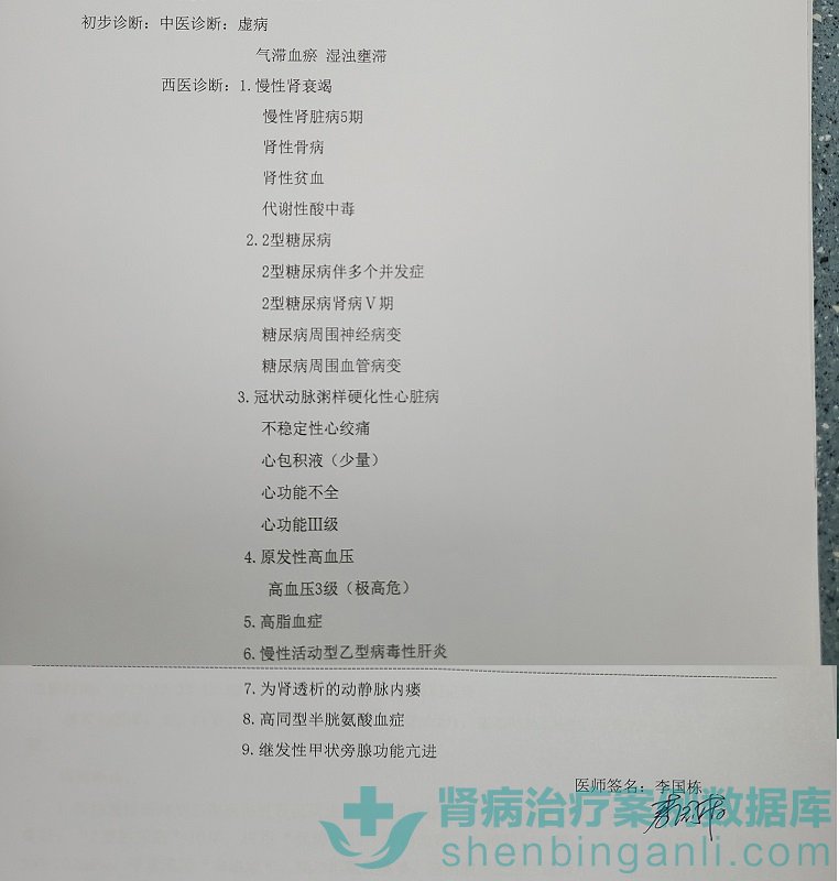 血糖和血压一直控制得不理想,胸闷、喘不上气,血肌酐升高至586.4µmol/L。