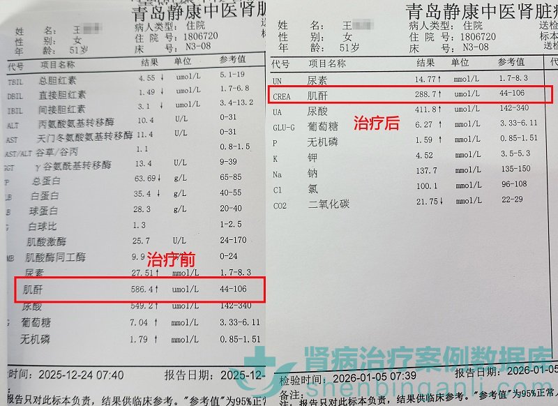 她的血肌酐就从586.4µmol/L下降至288.7µmol/L,其他关键指标也趋于稳定,不适症状明显减轻。