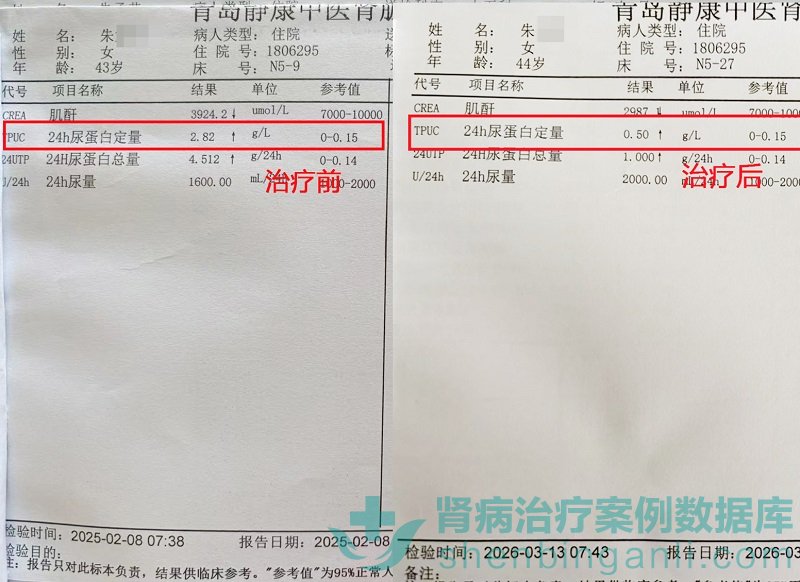 如今再次复诊,一切保持良好。算下来,我陆续消肿了十几斤,现在几乎没有水肿了。各项指标也在明显好转,24小时尿蛋白定量从第一次入院时的2.82g/L逐渐降至0.5g/L,总蛋白、白蛋白等关键指标都提升好转了。