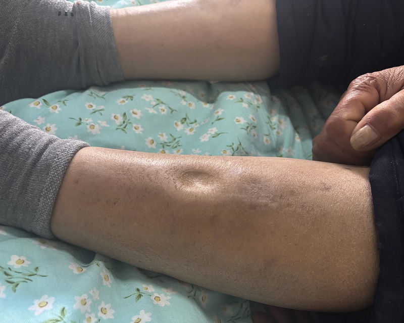 - (张新安副院长查房) (陈晓蛾的双腿明显消肿) 张院长,我现在感
