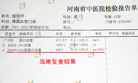 2018年初,张庆义在当地医院复查,24小时尿蛋白定量已经降至388mg(相当于0.388g),总蛋白升至58.8g/L,白蛋白升至37.4g/L,白蛋白指标升至正常范围!