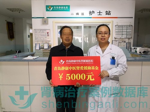 了解到王大叔家庭困难,我院还为他申请了5000元肾爱援助基金,这对王大叔来说无异于雪中送炭、暖上送暖。