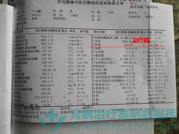此后的一年,王先生一直在当地医院接受治疗,但效果却并不理想,肌酐一直未降下来,徘徊在500umol/L左右。