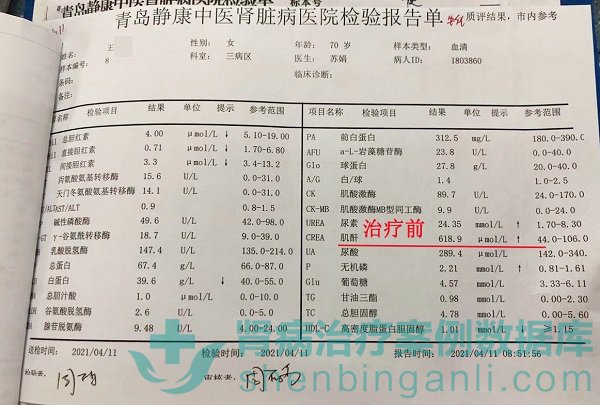 血肌酐 618.9umol/L,血压高达180mmHg,同时伴有2型糖尿病等。