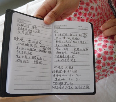(张晶每天都记录着自己的饮食、治疗情况)
